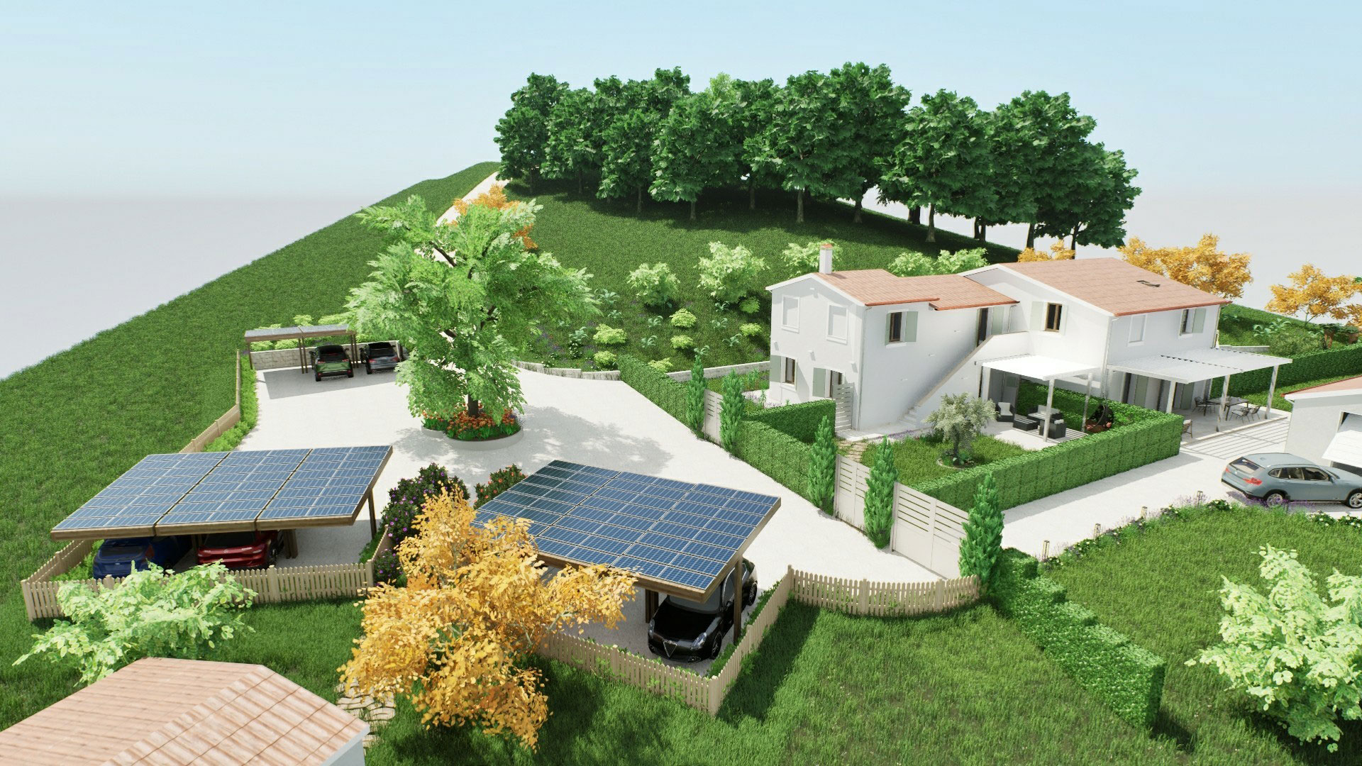 Home in A4 class: heat pump, photovoltaic system, underfloor heating, air conditioning, home automation, and electric car charging station.