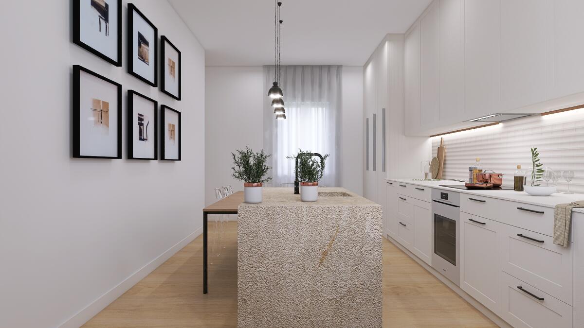 Duplex with open-plan living area, 2 bedrooms, two bathrooms, multi-purpose annex, and private garden.